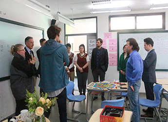 活动第二部分,与会领导与彼得•舒姆林先生一行进行座谈,舒姆林先生在座谈中谈及他的项目目前面向38个国家开放,主要针对美国中产阶级精英家庭,为培养具有领袖气质、精英人才服务,因此他希望通过交流合作,在为明学校培养出更多具有国际视野的精英学生。之后双方在课程开发,资源整合上达成了合作意向。最后,于校代表学校为其送上了纪念品以表示感谢,今后双方将为共同培养具有国际视野的高素质人才而不断努力。