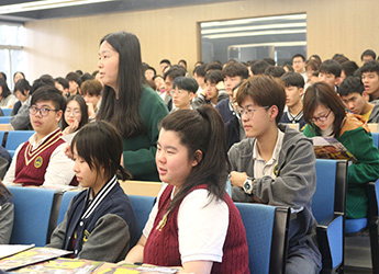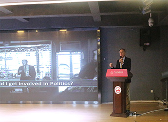 此行舒姆林先生为同学们带来了关于“青少年领导力”的主题演讲,讲座开始他从自己的家族故事开始谈起,舒姆林先生的父亲曾经历二战,战争对他们的家庭产生了很大影响。战后舒姆林先生的父亲致力于鼓励青少年用知识来回馈和改变社会,并成立了暑期研学机构,将孩子们送到世界各地。
