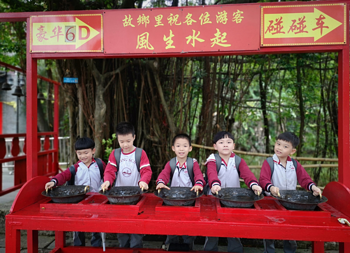 3月31日早上8点半, 五十多辆“快乐大巴”集体从北大附中为明广州实验学校的校园里出发,浩浩荡荡驶往岭南风情十足的花都故乡里主题公园。 一个半小时的车程后,“快乐大巴”纷纷到达景区,在班主任老师和导游的带领下,年级分区域交错体验,快乐的春游就这样开始了!