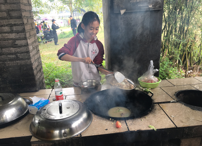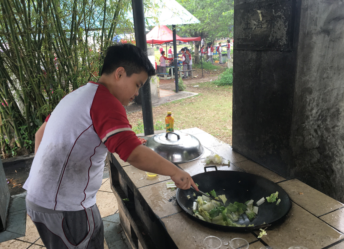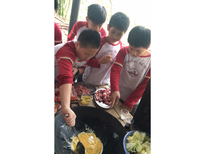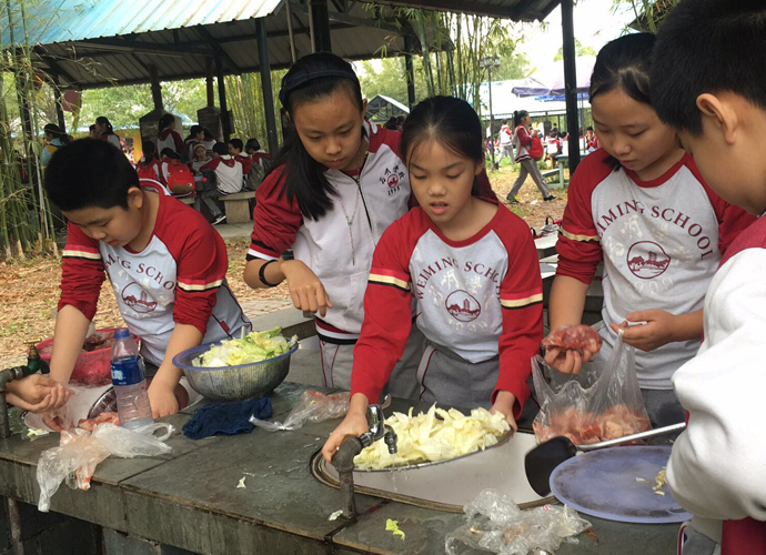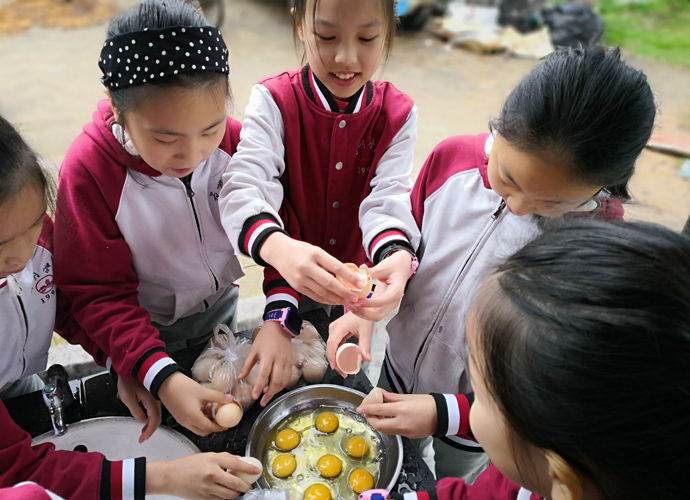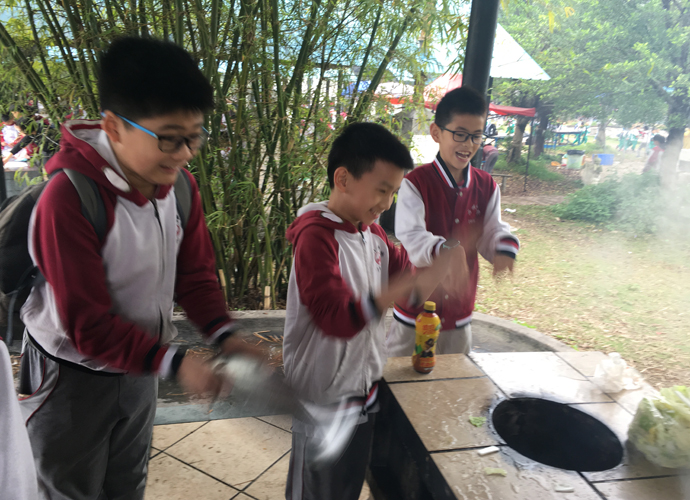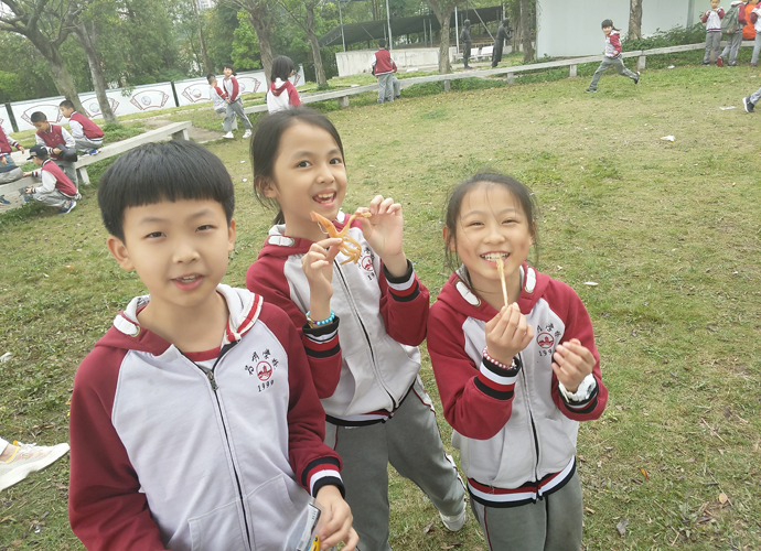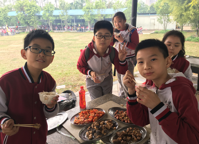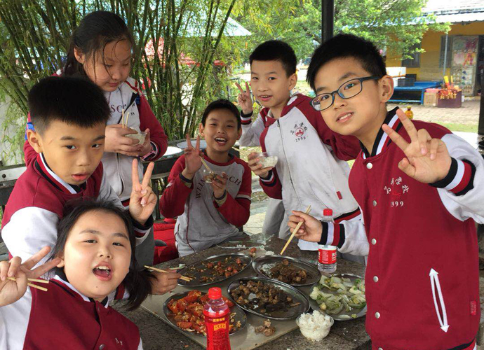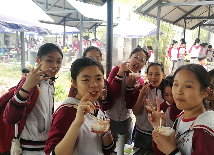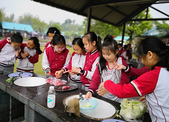 在欣赏完岭南特色建筑,感受岭南风情后,四-六年级的孩子们迫不及待地来到了野炊大鹏内,准备“大显身手”。在孩子们到来之前,景区的工作人员早已准备好了野炊的食物和工具,部分孩子还额外备了一些自己喜欢的食材和零食。一顿大餐就这样开始了!在野炊的过程当中,孩子互相帮助,互相配合,体现了他们的自主能力和动手实践能力!尽管缺少些味道,或咸了,或淡了,但品尝着伙伴们自己做的“大餐”,会觉得特别香!